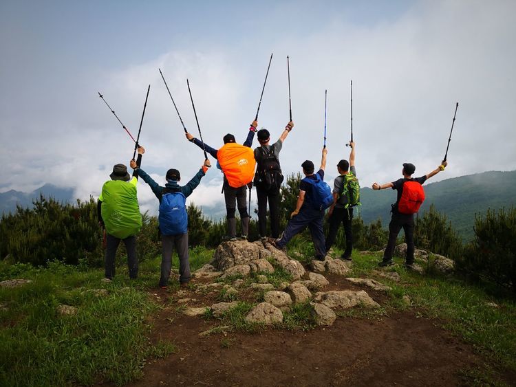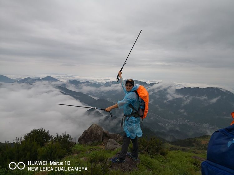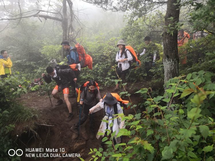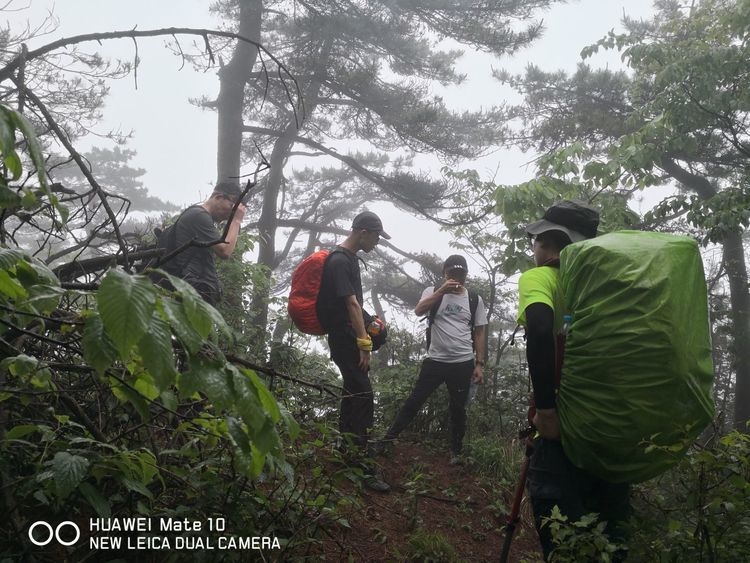 车子把我们送上海拔一千多米的登山口,雨哗啦啦下不停,穿上雨衣,背起行囊准备登山。