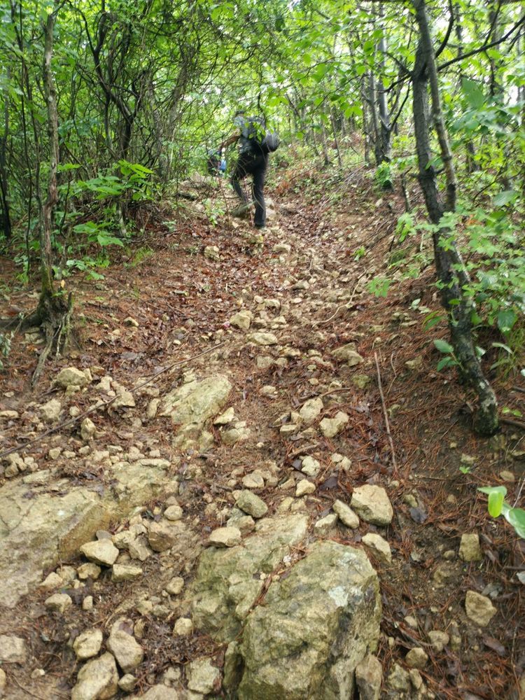 这个坡有点虐,大汗淋漓,气喘吁吁,实在是吃不消了,坐下来等等后面的吧。这次同行的11位,其中2位女驴,一直落在最后,不见人影……。