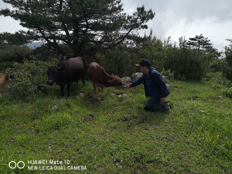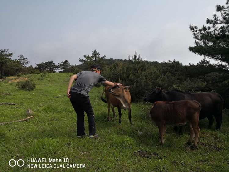 离开百仗岭,一路爬坡,来到山脊,偶遇牛群。
