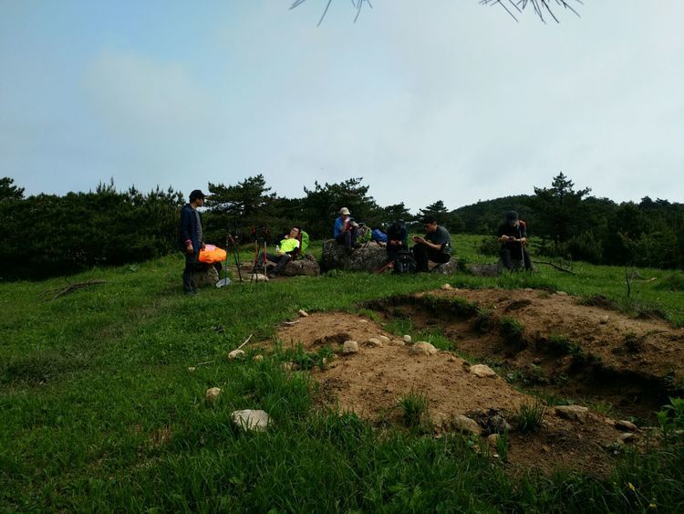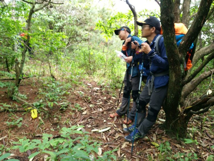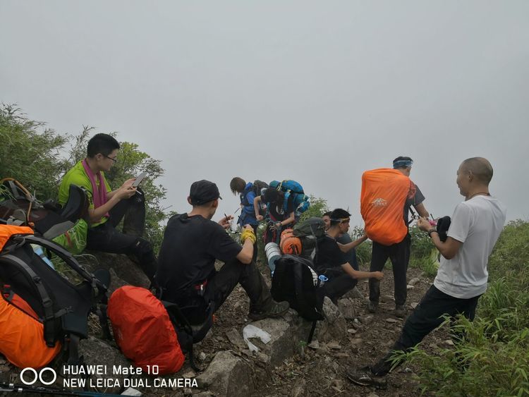 在此,领队助手尚未跟上队伍,领队将背囊留在原地,返回前往接应。要我们先行下山。