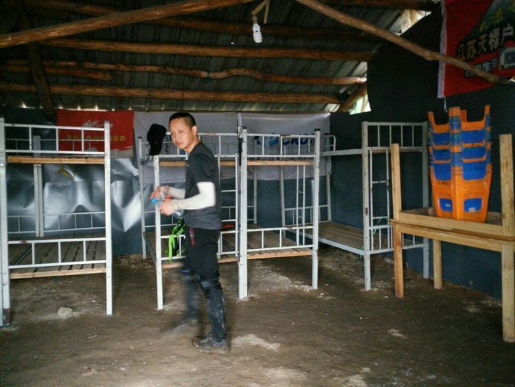 宿营地都是临时搭的棚子,四面透风。百丈岭平时也无人居住,驴友(都是年轻人)走这条线,必须要事先联系当地山民,山民从上下带菜上来,方有吃有住。