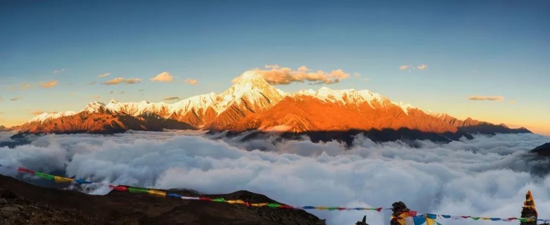 贡嘎山并非藏传佛教的神山,但在所有驴友心中,贡嘎就是一座充满神奇的雪山。它气势雄伟变化多端,有众多清澈的海子环绕四周,云海,鲜花,星空,旗云。它美得让人炫目,它有资格成为中国最美的徒步线路之一。
