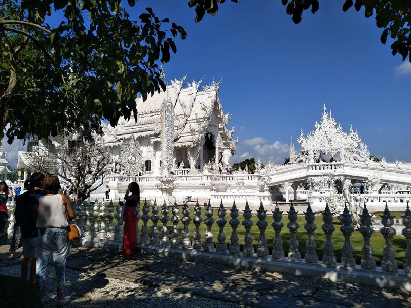 隔了一个多月才来写游记,也算是再重温一遍美好的回忆。乘坐夜班飞机抵达清迈之后,向导带我去了酒店歇息。晚上同一团的朋友们陆续抵达,领队带我们去了清迈有名的goodview餐厅。又酸又辣的冬阴功汤,美味的菠萝炒饭让人胃口大开,疲惫一扫而空。饭毕,在清迈街头走一走,散散步,开启美好的旅程。第二天,行程正式开始。这一天我们参观了白庙、黑庙。泰国人们对于皇室非常的敬爱,白庙是画家献给泰国皇室的礼物,建建停停修修改改,尽管还没完工,却已经精巧美丽。黑庙实际上叫“黑屋”,因建筑像庙,才被人称为“庙”,原是艺术家的私家花园,艺术家去世后,其遗孀将庄园对外开放。庄园奢华雄浑,无一不显示出艺术家的财力,建筑物本身