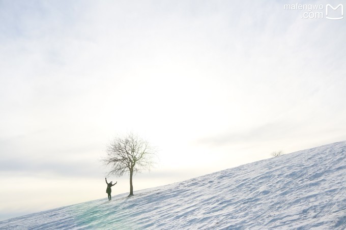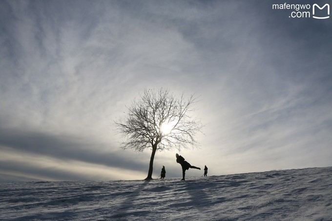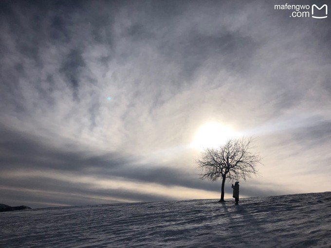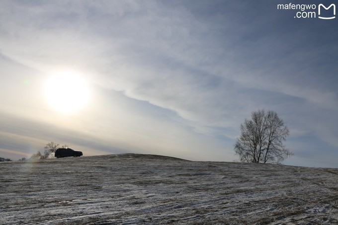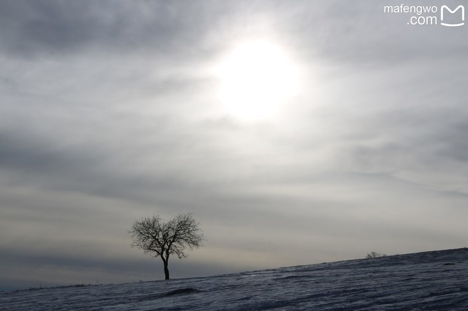 下车一会就感觉冻透了,拍了几张赶紧跑回车上暖和一会,又到不远处的另一边山坡上玩,同事发现一棵孤独树,像极了网红的 南京 体育公园的孤独树,在这拍了好几张特别喜欢的照片,同行的大姐冻得不下车,我们发了一张照片到临时组建的微信群里,她看到这儿拍照这么美,也下车来过一起玩了。