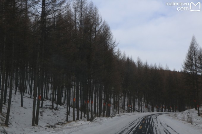 吃过早饭,坐车前往 塞罕坝 国家森林公园,月亮湖上玩漂移。快到 塞罕坝 的时候换乘越野车, 塞罕坝道路高低起伏,曲曲折折,有些地方还有急转弯,路上有积雪,小车爬坡和防滑能力不行。沿途路旁笔直的、身着白色的松柏,就像一排排冰雪战士在夹道欢迎,简直可以媲美 东北 的林海雪原(这一段是抄的行程介绍~~)