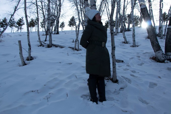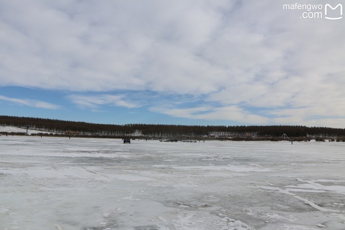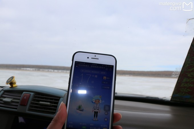 到达月亮湖,领队开车带着我们在冰冻的湖面上玩漂移,手机显示-17°,湖面上温度估计更低,下车一小小会就冻得不行,摘了手套拍照,手立马冻僵。