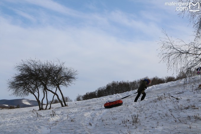 到了塞北 雪乡 地点,看到有玩滑雪圈的,滑雪圈前年在 哈尔滨 雪谷玩过,领队昨天说晚上回去找个雪圈带过来,他忘了。。。没能玩的起来