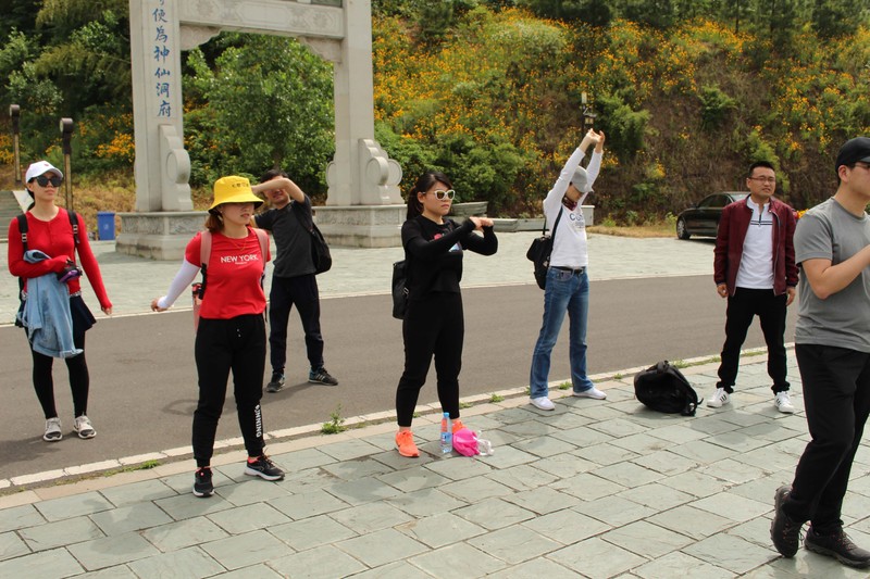第一次参加U玩这种不是区别旅行团户外徒步旅行,找了一个在南京的老同学一起,两人早早的到了集合地点。8:00左右一行17人坐上中巴车出发了,年轻的帅气的领队(悟空)对本次的行程进行了详细讲解,夹杂着轰鸣的发动机声音让大家对整个行程安排有了一定的了解并各自简单的进行了一下自我介绍。一个多小时的车程我们抵达了目的地茅山。看着满山的青枝绿叶,有着岁月痕迹的牌楼道观,领队让大家进行了简单的身体预热后,就带着一个个旅友们兴致昂扬向着山林深入前进了。