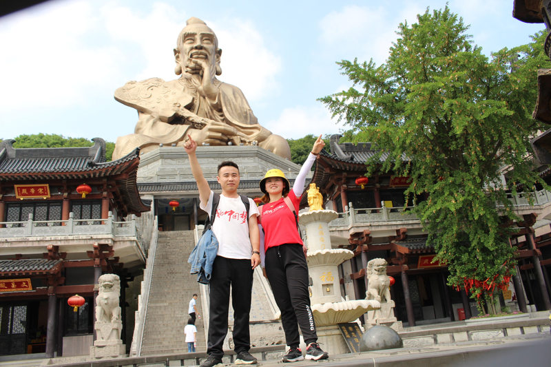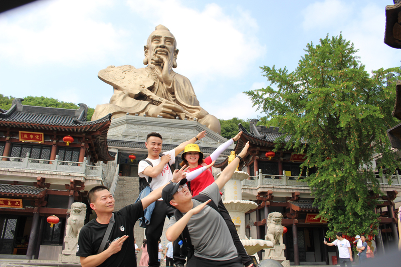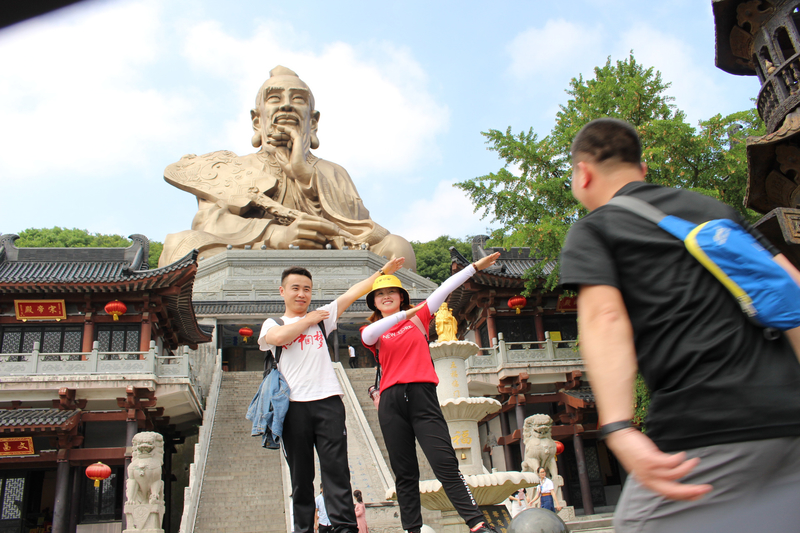 14:15来到了高99尺、重106吨、由226块青铜板焊接而成的入选大世界基尼斯纪录的露天老子神像。小伙伴们的疯狂拍照模式开启了,大家四散欣赏着道教圣地感悟着各自心中的道。快乐的时光总是太过匆匆到了集合的时间了,14:50领队带大家来到景点仙人洞,感受着仙人赐予我们烈日之外的清凉,感叹着大自然的奇特。
