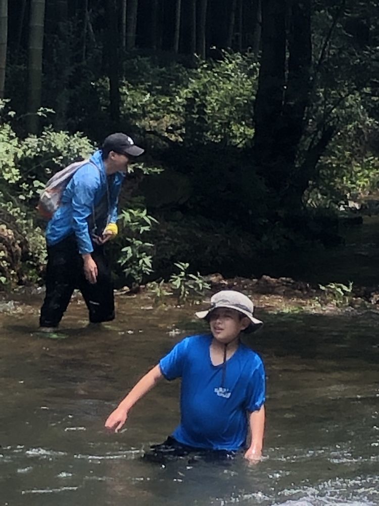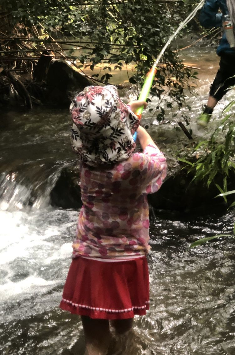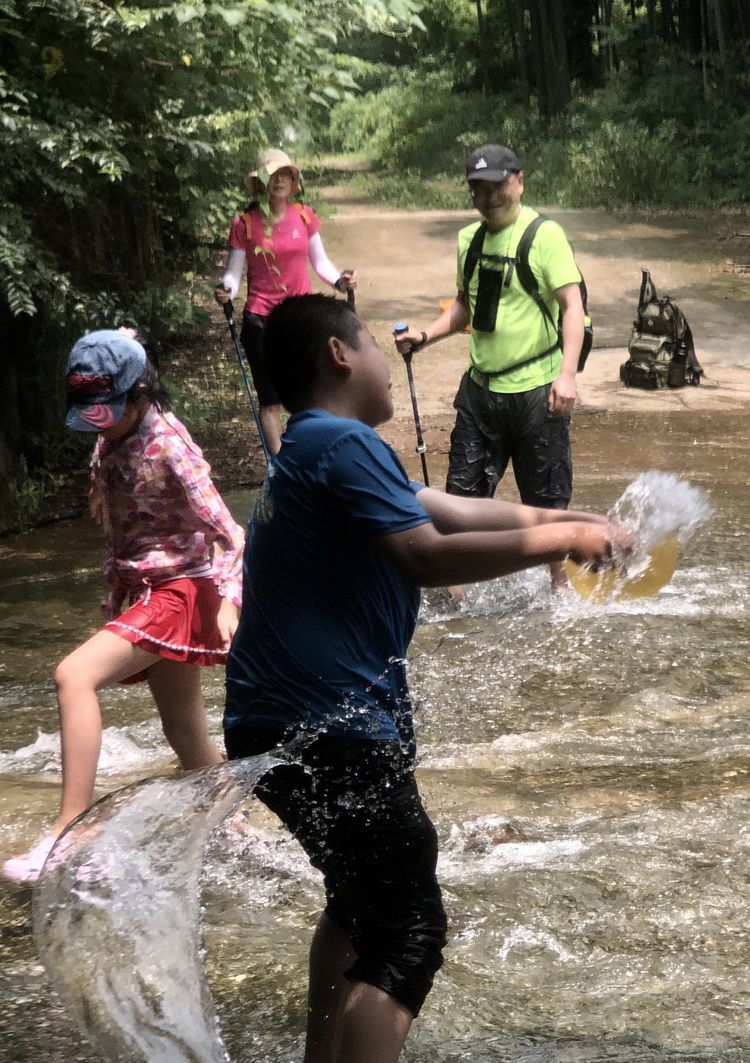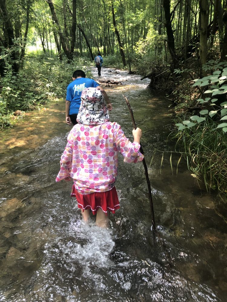 小伙伴们在溪间行走,轻松而惬爽