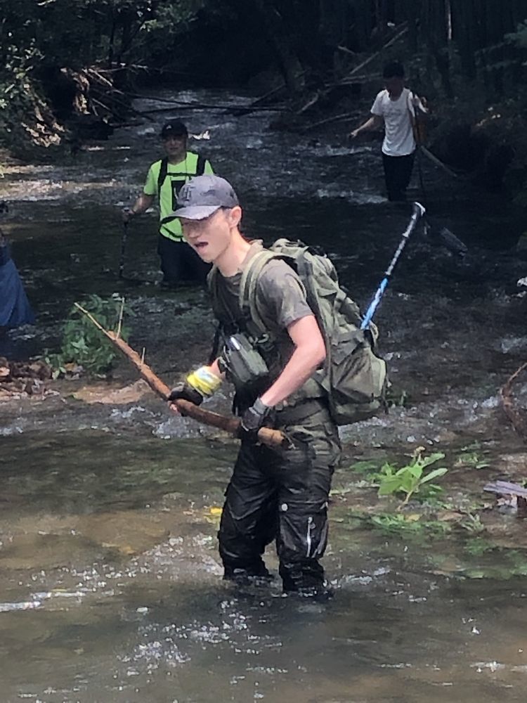行进在水中,湿身则是难免的,这时候防水套就非常关键了。边上的小伙伴伸出了友谊之手。