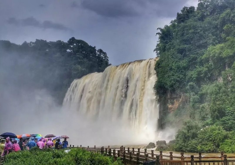 最后欣赏【黄果树大瀑布】,我们可以从多个角度欣赏这个亚洲最大的瀑布,感受飞流直下三千尺,疑似银河落九天之气魄。越靠近瀑布,水雾越大,我们开玩笑说,最少达到了中雨的级别,有伙伴寻求降暑刺激,不打伞也不穿雨衣,那体验其实也相当赞,因为我也没有穿雨衣真切的感受了一把,还有伙伴拍到了突现的彩虹。