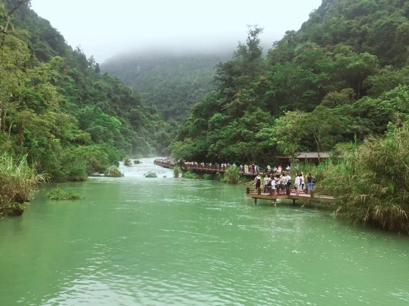 我们所有的伙伴都选择了走全程欣赏天星桥,后半段游客相对较少,体验感更强。天星洞、水上石林、银链坠潭瀑布,到处可见泉水喷涌,飞瀑倾泻,现在正值雨季,水量充沛,伙伴们对此壮观场景表示惊叹,不过一定要注意安全哦!