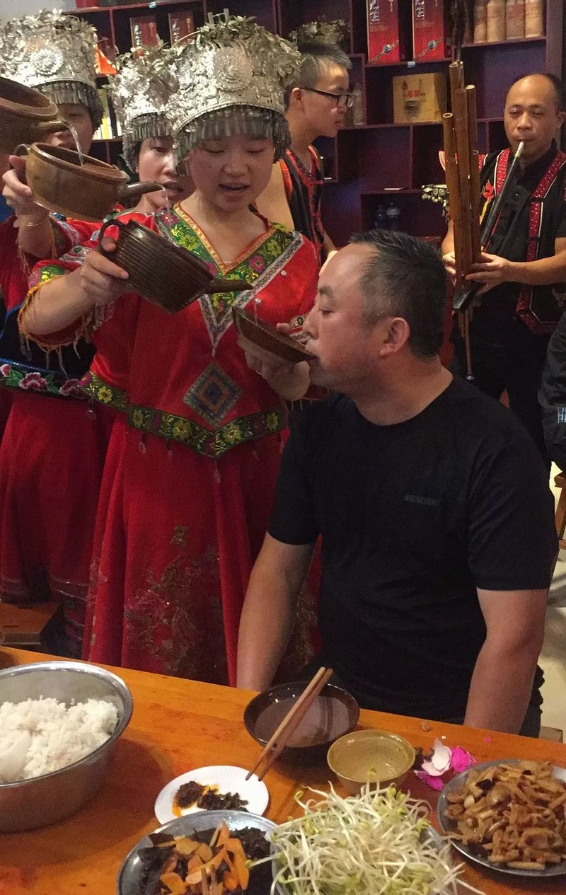 说实话,味道一般,但是吃的就是一种感觉与氛围,感觉很好,录制了很多视频,哈哈。尤其是本团最高的小伙伴的爸爸被敬酒,鸡蛋没有吃的伙伴,美丽的苗家姑娘帮她用额头敲开,我们美曰:红运当头!