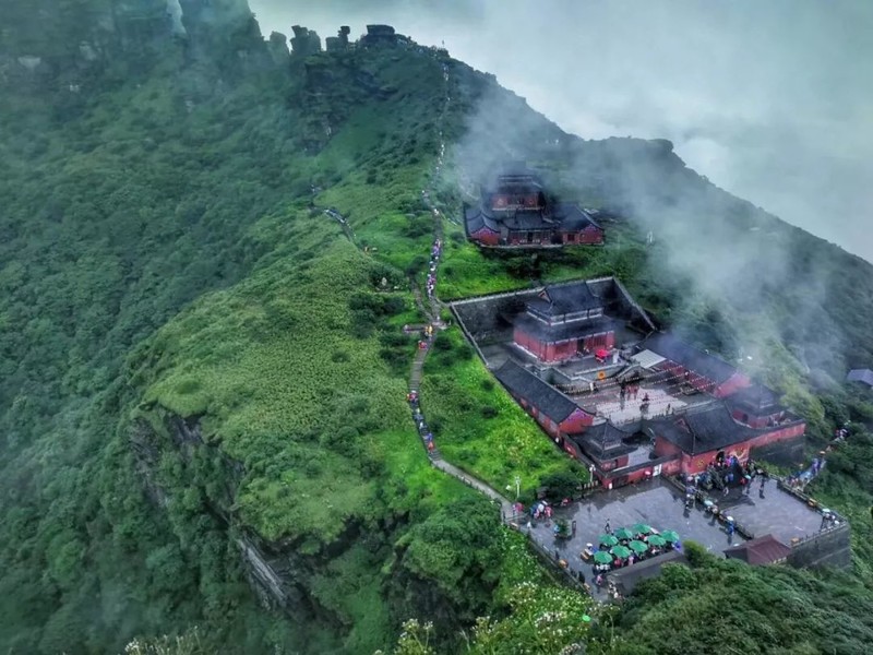 早早起床,前往梵净山,就在我们去之前不久,这里刚刚申遗成功。在路上就开始下起了大雨,心里隐隐担忧,果然到山脚下,购票时,景区就通知山上雨水太大,山洪爆发,暂停售票,满满的期待,心想难道这一次真的要错过这个最期待的地方吗?伙伴们一致决定等待,等了近3个小时,终于景区通知开始售票,欢呼雀跃,蓄势待发,不过,由于时间原因,原本计划的徒步上山改为索道上山,坐上索道的那一刻,眼睛就开始在天堂遨游。雨后,厚厚的云海,索道下面,森林植被很密,如果有恐高的伙伴可能有点小怕怕哦。我们开着玩笑下了索道,平台上,拍摄厚厚的云海。而后开始登山,雨后很舒适,登山的人相对景区较少,我们的目标是挑战新老金顶,先选择了老金顶,也就是红云金顶,有的地方很陡很窄,互相提醒安全,到达,轻松。而后下山,继续挑战新金顶,突然又下起了大雨,我们一个接一个,攀着铁链,手脚并用,攀上了宣传照上的制高点,美景尽收眼前,感叹大自然的鬼斧神工,挑战成功梵净山,此行完美。下山后对梵净山也都是念念不忘,下次我也还要再去。