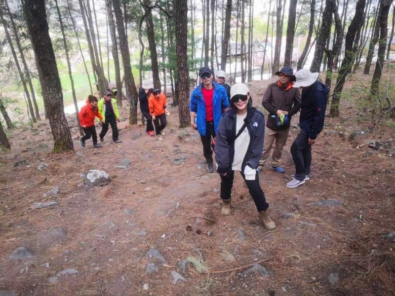 来哈巴之前的一周,我和坛子哥,艾菲姐姐已经做了一场拉练,紫金山两上两下。中午饭后,时间还早,大家想一起出去逛一逛,本来想着只是饭后溜达溜达,围着村子欣赏欣赏花花草草,蓝天白云。无奈村庄四周尽是山路,再加上一群户外爱好者,走着走着就变味了,一个坡接着一个坡,活脱脱的一场拉练。