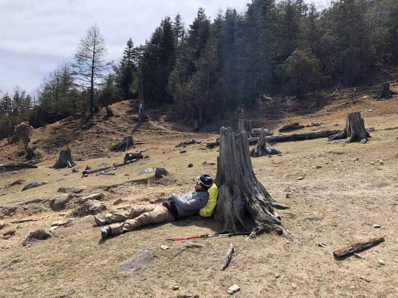 到达3700米午餐地点。这一路艾菲都在感叹天气好,阳光明媚的午后,真想就躺在这睡一觉。蜗牛睡姿。
