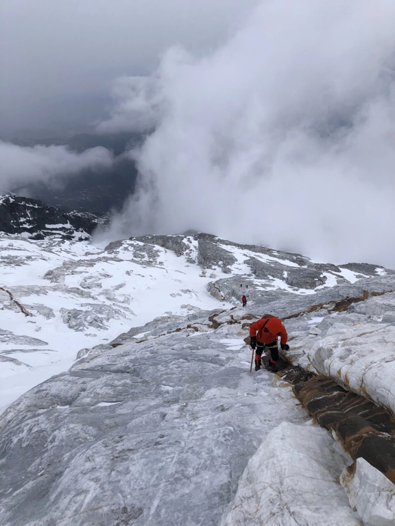哈巴雪山是初级攀登,但我感觉并不容易。领队和当地的协作告诉我们,哈巴雪山要比玉珠峰难,玉珠峰6000多米。登顶之后领队说我们可以直接去挑战慕士塔格7500+。扯远了,哈巴攀登有陡峭的大石板,4700米的大风,雪线上的茫茫雪路。