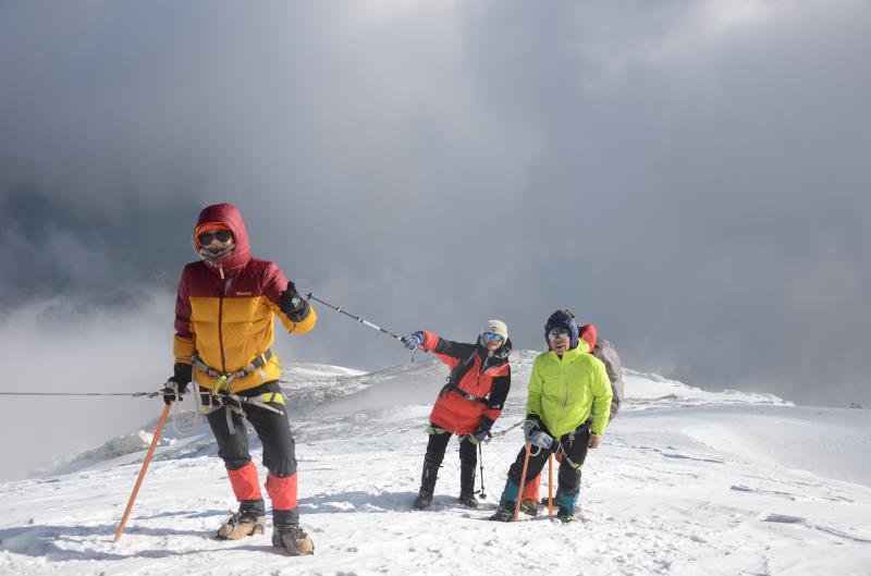 登顶的喜悦,和艾菲前后脚登顶,一起合照。
