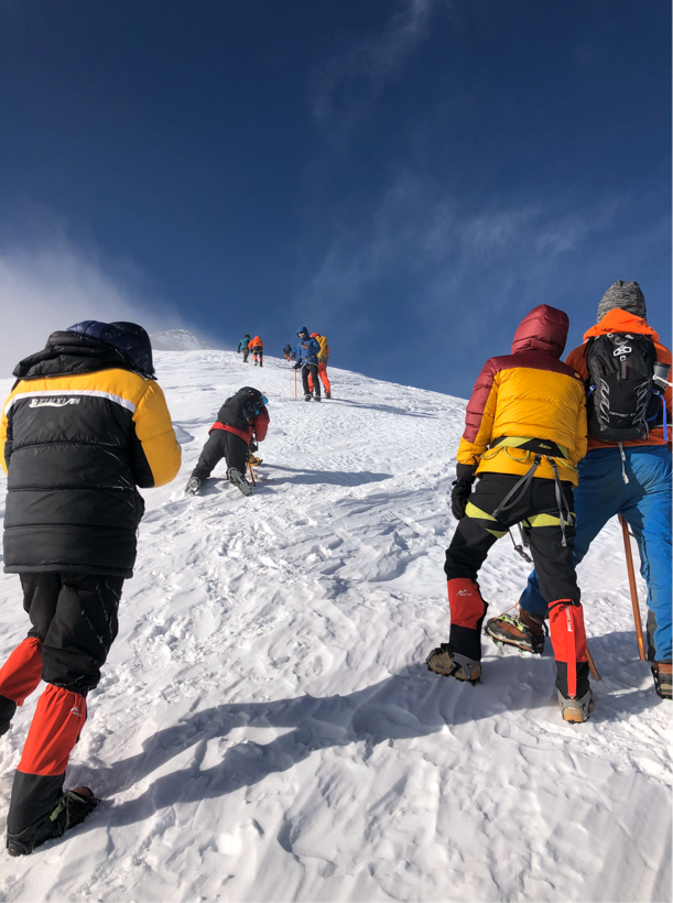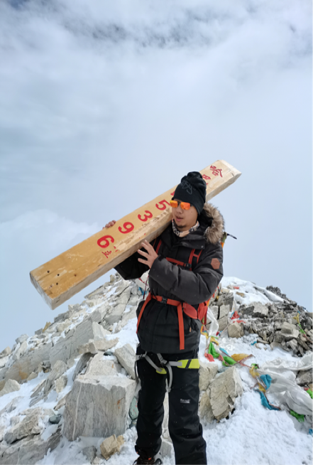 我一直走在队伍的最前面,到4900米左右的时候,我听到了艾菲姐姐的声音。我的鼻子一酸,泪水差点流下来。我知道坛子哥高反肯定无法登顶了,我们三剑客就剩我和艾菲姐姐,她还没有过高原经历,怕她高反。然而,她一开始走在队伍的最后头,一路不断的超越,并最早登顶,真的很佩服她。艾菲封神之战,结束之后,我们每个人都对她赞不绝口,并询问她的吃的是啥路餐,啥高反药,有如此神奇的效果。