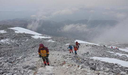 没想到下山的路如此的艰难,下撤一段时间遇到了亮亮,当时很为他担心,最后他也登顶了,虽然下撤到大本营比大家晚了3小时。他之前去的二峰没有登顶,这次为弥补遗憾而来,是一定会坚持的。亮哥加油。