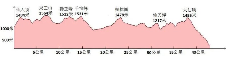 本次穿越共计40-50公里,分两天完成。(仅供参考)第一天约30公里,完成前五尖:仙人顶、龙王山、药王峰、千亩田、桐坑岗(不能上),深王公路铁塔 、仰天坪(露营)或者下到村里告岭农家住宿