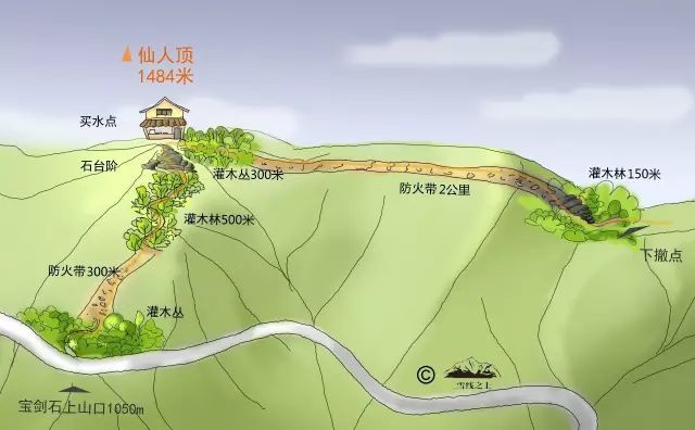 一条路是爬上千亩峰后从直接从乱石堆下降,这条路难度更大,较少的山友选择。