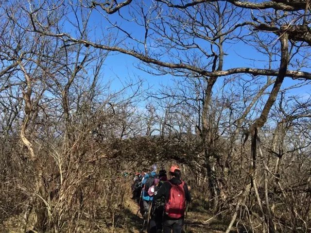 第五尖——桐杭岗是七尖穿越的第五尖,但由于千亩田沼泽被划为自然保护区封路,现在大家一般不再走桐杭岗。如果仍有山友想登桐杭岗,就要走一段回头路,大约多耗费两小时的时间。