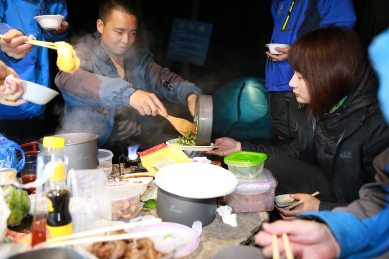 下午还是很轻松的,很顺利到达营地,大家都趁着天未黑,扎营、做饭、腐败