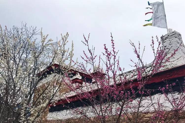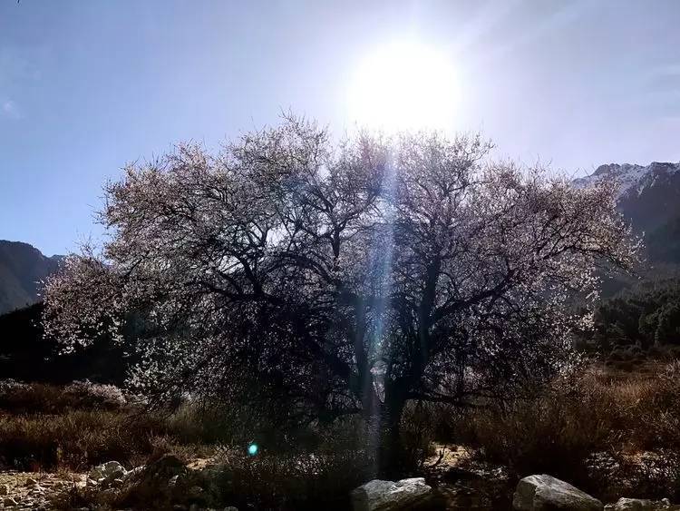 藏区的桃花,大都树形高大优美,树干粗壮,气势像极繁茂的梧桐。花儿偏小,多为淡粉色,密度很高,密密匝匝,呼啦啦有成千上万的感觉。