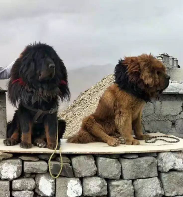 二个藏獒蹲坐门口,是因为栓着的缘故吧,全然没有想象的凶猛威武。