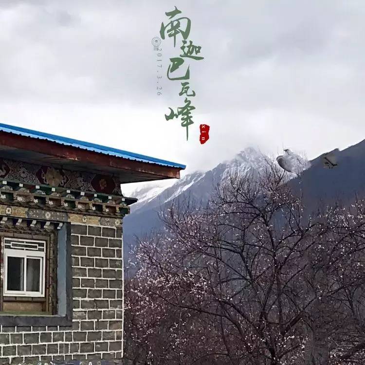 这个村子很小,到处都是盛开的桃花,融合周边的江水、雪山,简直是美不胜收。我们到时已是黄昏,因为阴天,对于在村里观望南迦巴瓦峰都没有什么指望,加上已经尽览真容。我洗了把脸,换了双布鞋,泡了自己带的茶包,在院子瞎转,就在厅堂的廊前,抬头猛然惊现,那神秘莫测的山峰正与我蓦然相对……