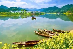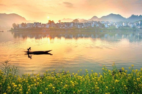 春日的新安江,两岸油菜花竞相开放,映衬着白墙黑瓦的徽式古建筑,静静流淌出一片醉人的春色。坐船游玩新安江,静听微风习习、水声潺潺,随着船只的行进,可以看到两岸景色的不停变换,就这样,沉醉在春光里。