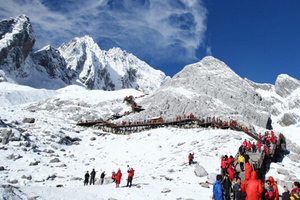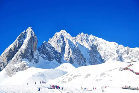玉龙雪山:位于中国云南省丽江西北的山脉,雪山呈南北走向,扇子陡海拔5596米,是世界上北半球纬度最低、海拔最高的山峰。雪山的13峰终年积雪不化,如一条矫健的玉龙横卧山巅,有一跃而入金沙江之势,故名“玉龙雪山”。也是近些年大家熟知的热播电视剧:“北京青年”、“木府风云”、“北京爱情故事”、“一米阳光”等知名影视剧的取景拍摄点。