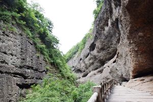 走在明堂山玻璃栈道 真真正正体验到了人在空中走,景在脚下游,栈道总长 2000 米,宽 至 1.5 米2 米,地面落差达 400 米,视野落差近千米