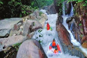 13:30稍作休息前往霍山大峡谷漂流景区(漂流时间2个小时左右)。霍山大峡谷漂流坐落于大别山东入口,全长8公里,落差高达160米,最大单体落差为19米。是华东地区漂流规模最大,建设档次最高,服务品质最好,服务项目最全,同时也是华东地区唯一6人单船乘坐和专设儿童、老人漂流段的水上运动娱乐项目。河水质地清莹,水坠落差时,吼声如雷,白沫飞溅;水经平滩时,小鱼来去,河石可捡。皮划艇起落水上,呼啸山谷,可中流击浪,豪情飞扬;也可木桨横倚,静观风物,即惬意又刺激,动静之间,其乐无极。两侧树木山崖,巍然高耸,垂绿披翠,一路上分别有美人瀑,绝岭、天崖,老虎口,孔雀屏,九曲长河,七星龙井,鬼门关等景点。属极佳漂流河道,堪称华东一绝。