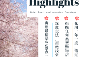 平坝樱花为季节性赠送产品,4月初如樱花凋落,我司不承担退款或赔偿,将改赠送国家AAAAA级景区【青岩古镇】,望理解;
