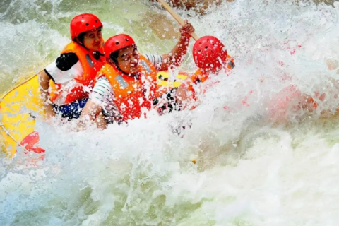 13:30稍作休息前往霍山大峡谷漂流景区(漂流时间2个小时左右)。霍山大峡谷漂流坐落于大别山东入口,全长8公里,落差高达160米,最大单体落差为19米。是华东地区漂流规模最大,建设档次最高,服务品质最好,服务项目最全,同时也是华东地区唯一6人单船乘坐和专设儿童、老人漂流段的水上运动娱乐项目。河水质地清莹,水坠落差时,吼声如雷,白沫飞溅;水经平滩时,小鱼来去,河石可捡。皮划艇起落水上,呼啸山谷,可中流击浪,豪情飞扬;也可木桨横倚,静观风物,即惬意又刺激,动静之间,其乐无极。两侧树木山崖,巍然高耸,垂绿披翠,一路上分别有美人瀑,绝岭、天崖,老虎口,孔雀屏,九曲长河,七星龙井,鬼门关等景点。属极佳漂流河道,堪称华东一绝。