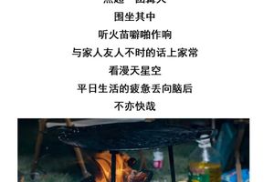 A:晚餐自助烧烤 荤素搭配16个菜肴(菜品自助) 营地会准备好生好碳的烤炉(木炭、碳夹) 调料盘(盐、孜然、辣椒面、油)