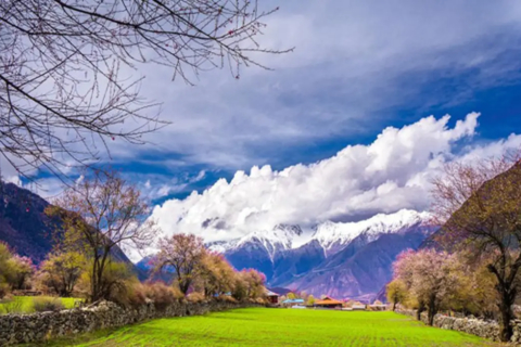 鲁朗用完早餐后前往波密桃花沟,这里的桃树不是人工栽植,都是野生的。几百年来,藏乡人民从没有人破坏和砍伐,这与藏族人喜爱万物生灵有很大的关系。云带挂山腰,雪山影河谷,田地绿色浓,农舍错落间,牛马悠然行,桃花遍地现。这不是文人笔下的仙境,而是人间林芝四月天。