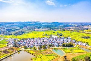 粉墙黛瓦的徽派村落自有独属于它的灵动悠然,被簇拥在油菜花海中,与远处的黛青色山峦相映,构成了一幅浓淡相宜的水墨画,袅袅轻烟给这幅水墨画增添了一丝治愈的烟火气。
