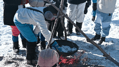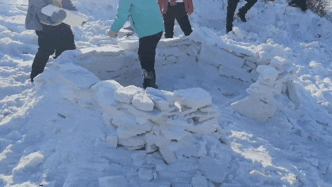 下午:原住民老猎人向导原始丛林雪地追踪、GET野外生存技能学习、爱斯基摩人同款雪屋建造、举办"村晚”、火把巡村、篝火烟花