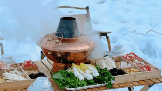 早餐、午餐(雪地火锅)晚餐(DIY饺子宴)