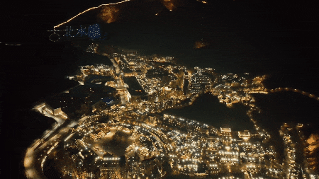 当夜幕降临后,雪如意灯光秀璀璨夺目,与夜空中的繁星交相辉映,美不胜收。