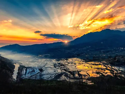 【精心安排】精心为您安排元阳多依树梯田日出+老虎嘴梯田+坝达梯田日落+罗平万亩油菜花海+东川红土地+抚仙湖;
