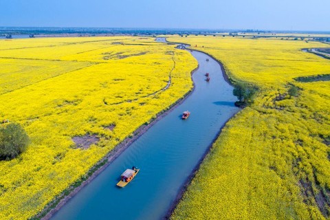 8:00准时出发,一路上队员互相介绍熟悉,群体互动,一路欢声笑语。10:00左右到达高邮湖上花海风景区,这里是高邮市利用油菜花观光功能、以及高邮湖周边自然景观,积极打造高邮湖上花海景区。这里有烟波浩渺的高邮湖,2000多亩的油菜花海,随风飘逸的芦苇荡。 为了大家可以充分体验这片湖上花海,本次特地安排了景区的船游和小火车体验,大家既可以泛舟在花的海洋,徜徉于碧波清风之中,也可以乘坐小火车在美景中穿行,静享春日好时光,满足你关于春天的所有浪漫幻想!午餐大家可以在景区或者附近自由用餐,或许一碗属于扬州城特色的阳春面就是不错的选择。