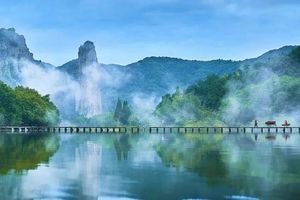 【仙都-鼎湖峰】整个仙都景区的核心代表,一座独立的山峰和山体的岩壁脱离而开,犹如一根春笋拔地而起,直插云霄,有“天下第一笋”之美誉。