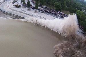 钱塘江大潮撞坝瞬间