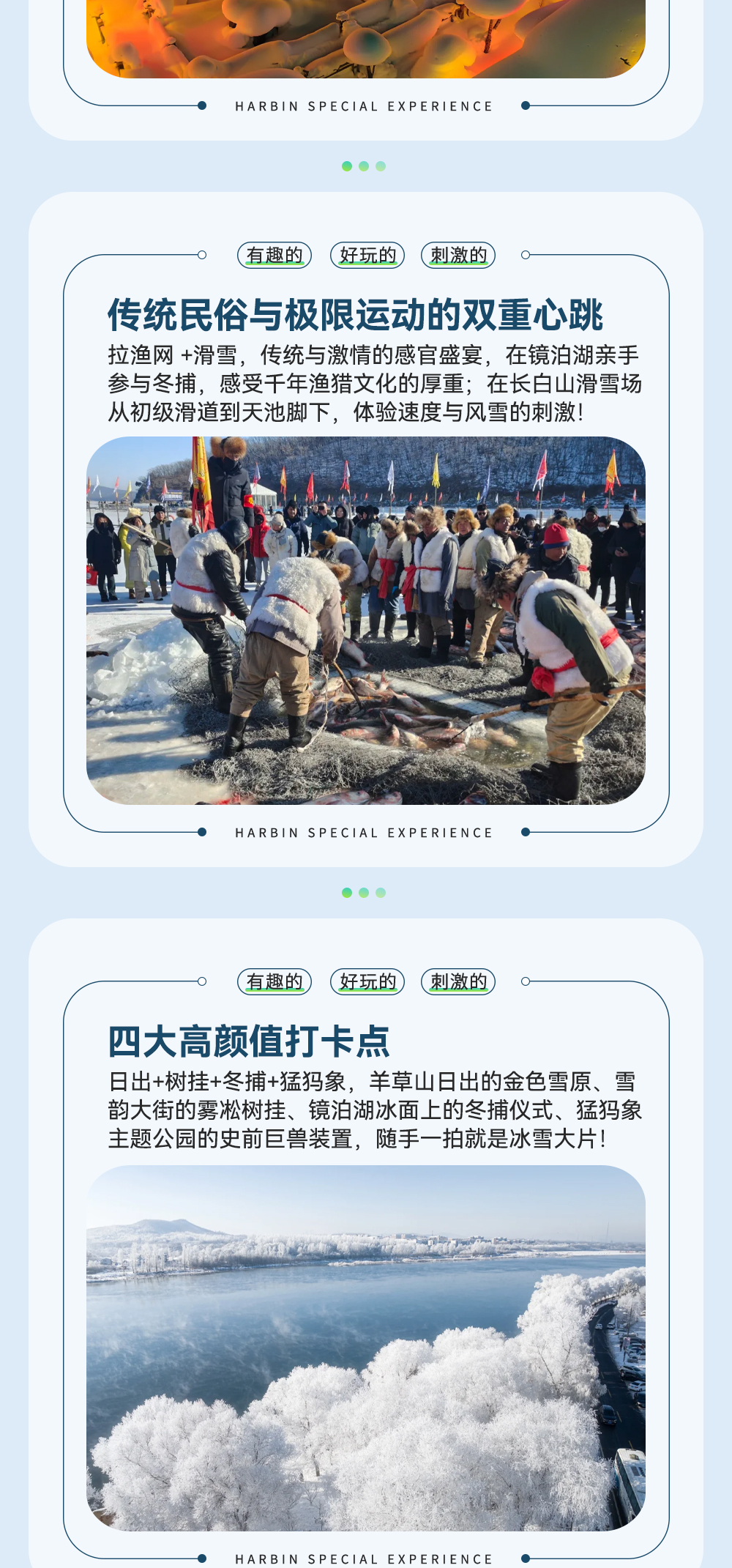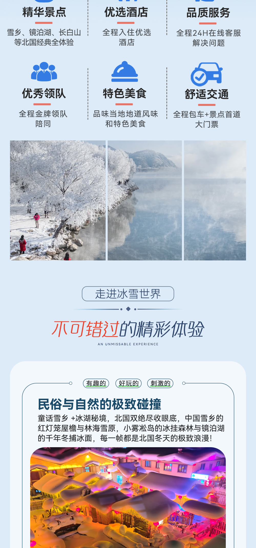 4.全程门票费,雪乡门票+景交车票、镜泊湖冬捕+雪地长龙、长白山门票+长白山景交车票、滑雪门票和雪具