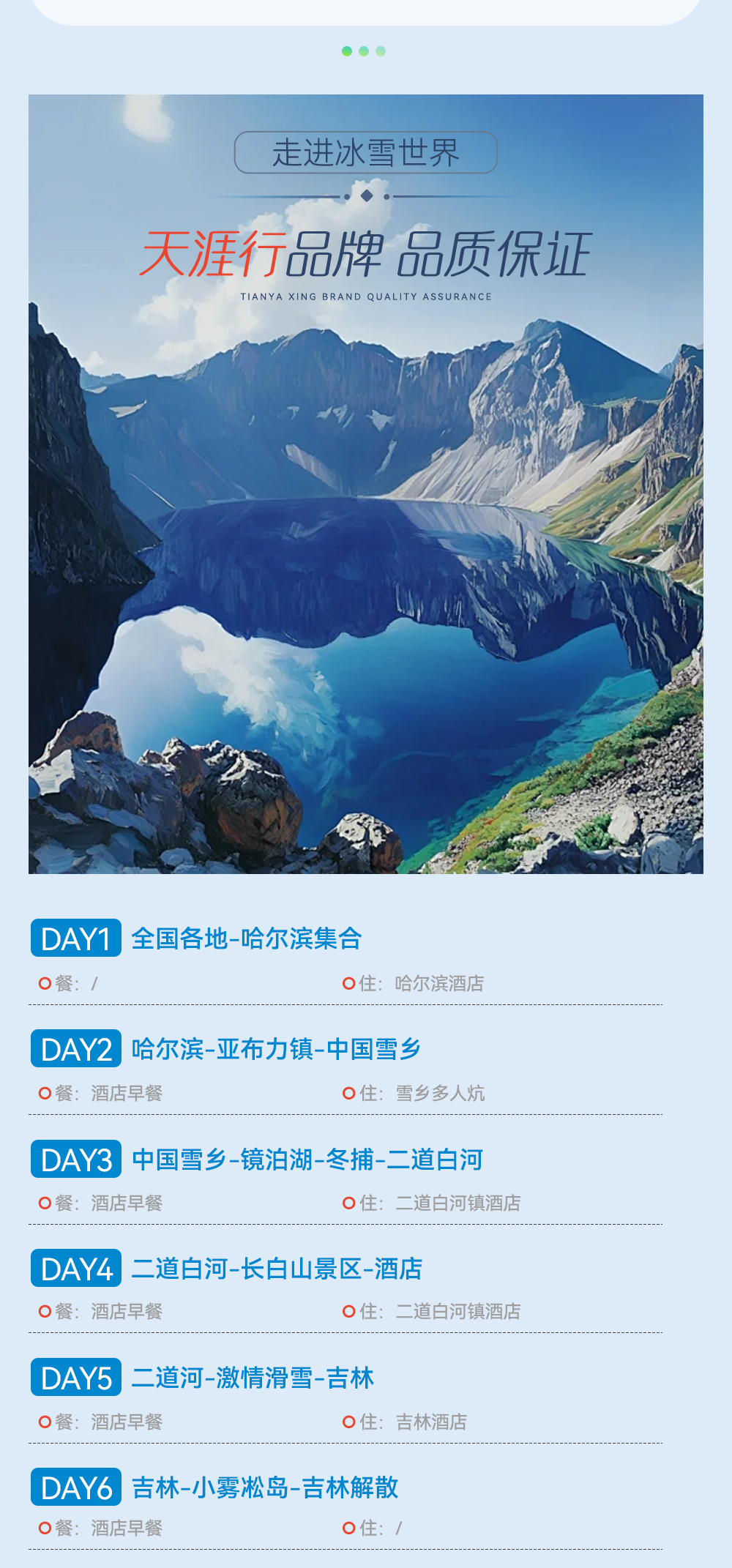 1.2米以下为儿童,不含门票、床位,含车位费、领队费、雪乡炕位、长白山滑雪、保险,不含酒店住宿、包含镜泊湖项目,如需占床补1000元床位费含早餐